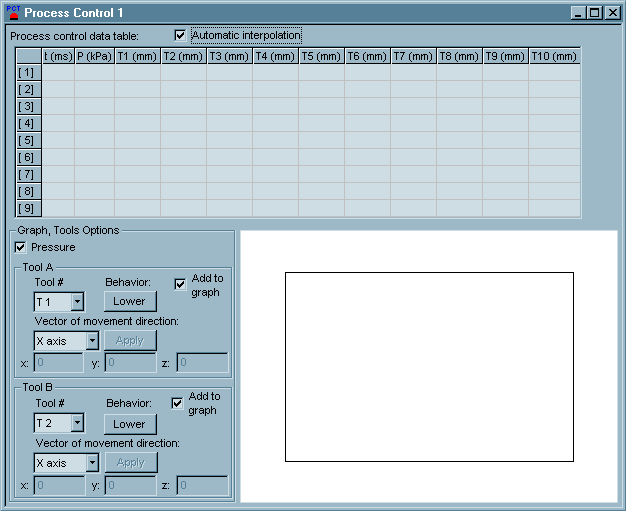 Process control document is used to store description of the applied pressure / vacuum and movements of tools. Maximum of ten tools is supported This means that for one simulation, ten tools are available with independent movements.